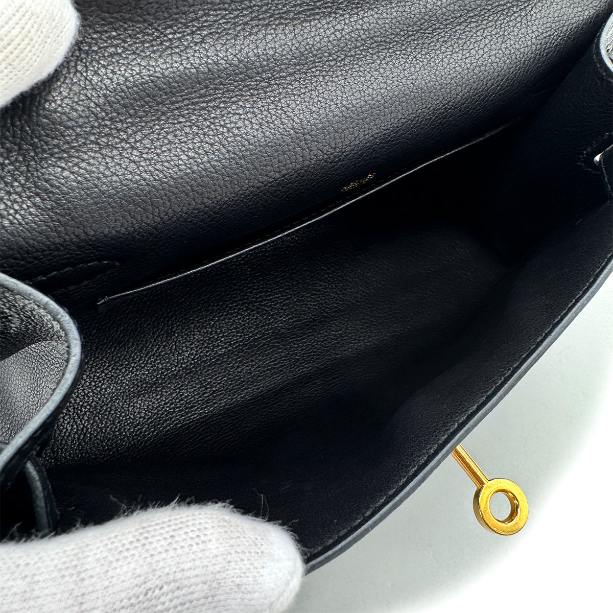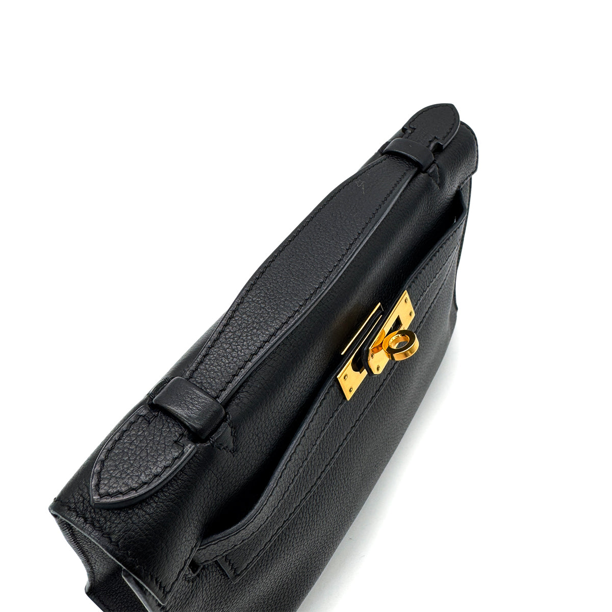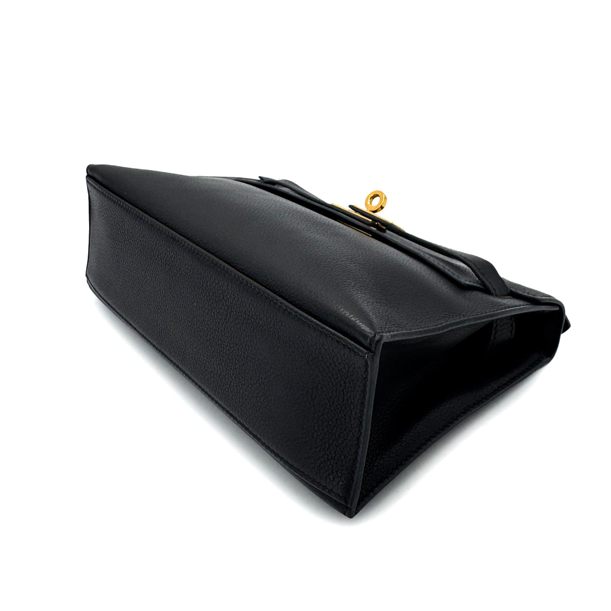 HERMES KELLY POCHETTE SELLIER BLACK EVERGRAIN HAND BAG □I GHW 90293008