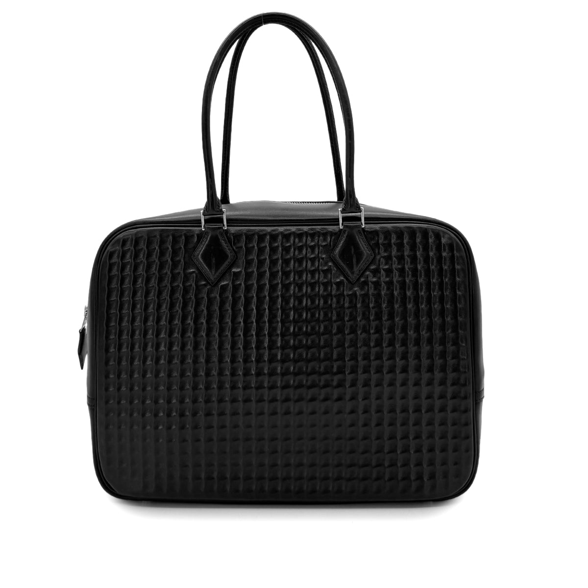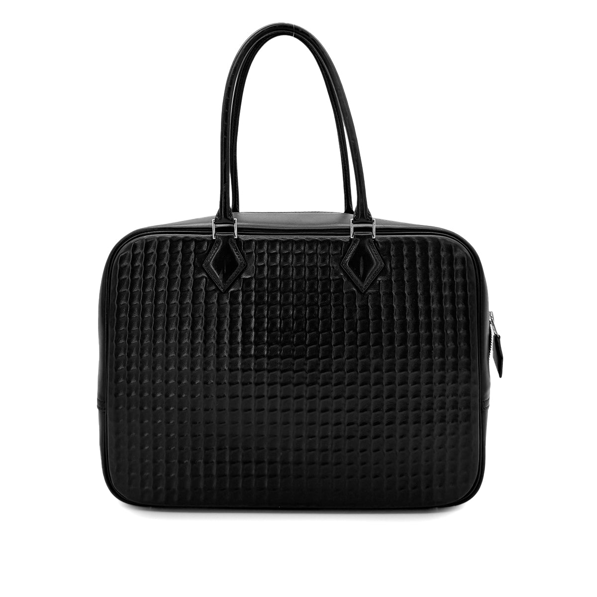 HERMES PLUME 32 HAND BAG WAFFLE DEUTCH BLACK □G SHW 90293000