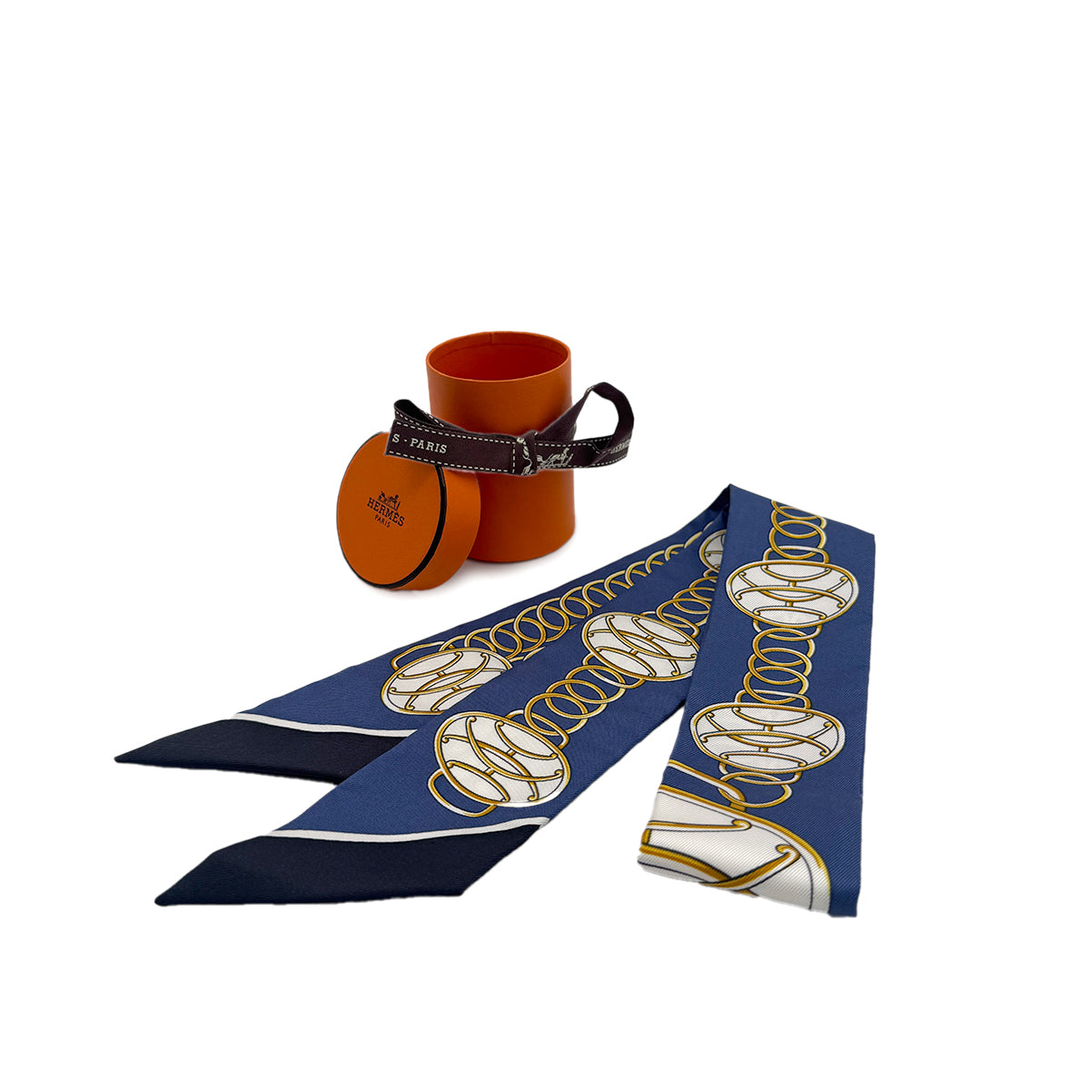 HERMES TWILLY LIFT PROFILE SCARF BLUE YELLOW SILK 90295852